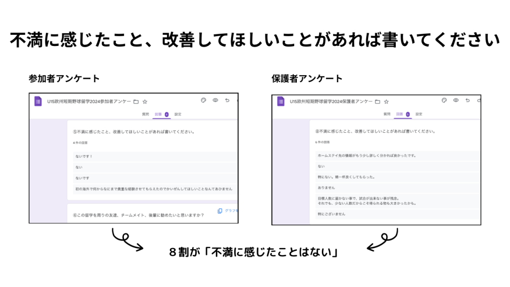 ▽過去の留学後、本人とその保護者にとった匿名アンケート結果▽
